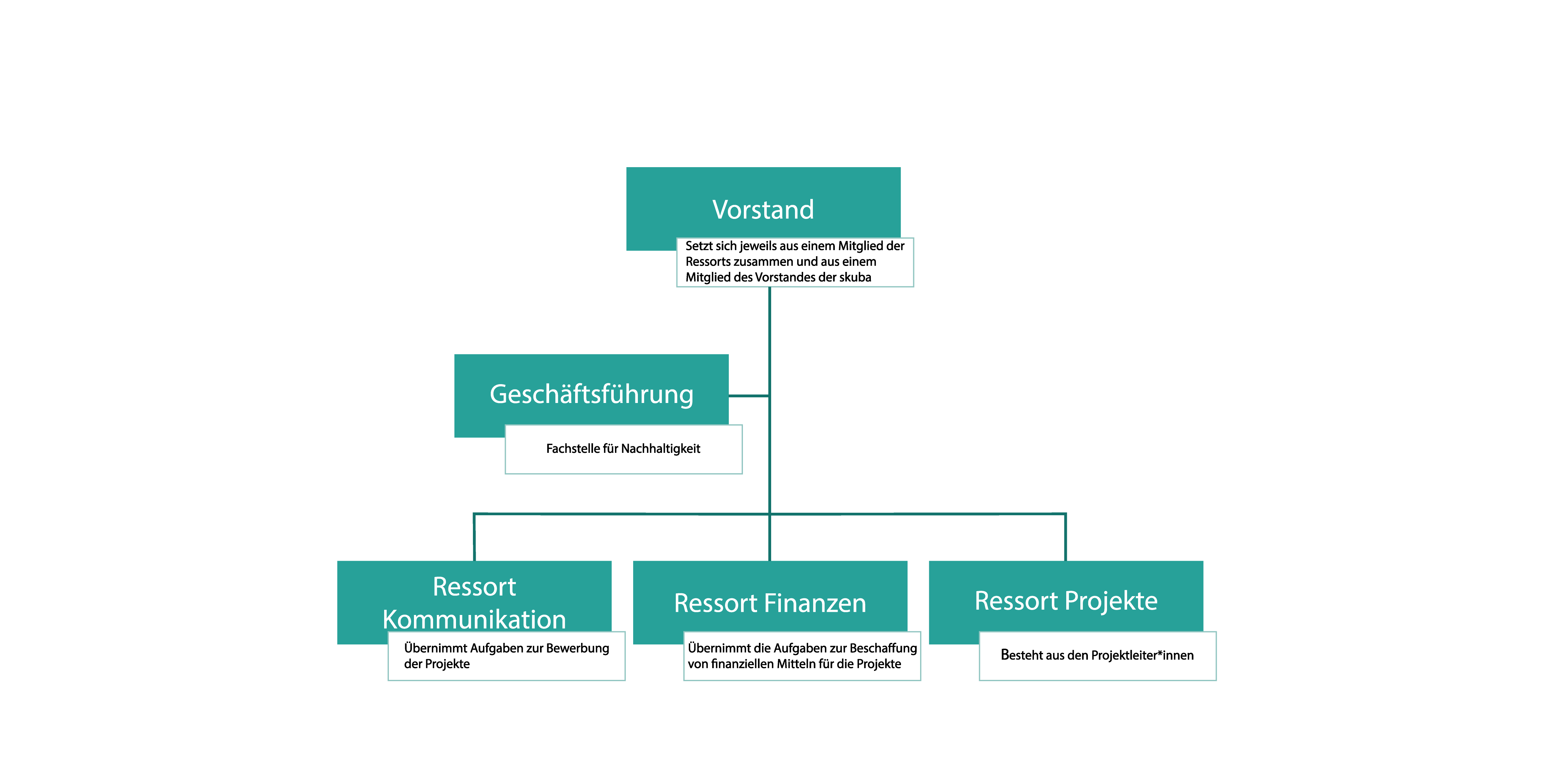 Das Board (der Vorstand) besteht aus maximal 10 Mitgliedern, darunter die Gründungsmitglieder der AG Nachhaltigkeit und mindestens ein Mitglied des skuba-Vorstandes. Mindestens die Hälfte der Mitglieder sind Studierende an der Universität Basel. Jedes motivierte Mitglied der AG Nachhaltigkeit kann sich als Vorstandsmitglied nominieren lassen und sich noch intensiver für die AG Nachhaltigkeit engagieren. Zu den Aufgaben des Boards gehören die enge Zusammenarbeit mit dem Kernmanagementteam beim Projektmanagement sowie bei strukturellen und organisatorischen Entscheidungen; finanzielle Entscheidungsfindung und die jährliche Überarbeitung der Konten sowie Spendenaktionen und Budgetierung; Public Relations und Kommunikation in Form von Öffentlichkeitsarbeit, Werbung für verschiedene Projekte und einer aktiven und informativen Präsenz in sozialen Medien.